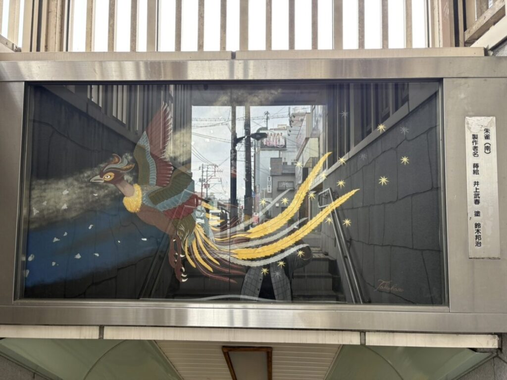 会津若松駅前の地下道の入口に、古代中国から伝わる方角の守護神「四神」を