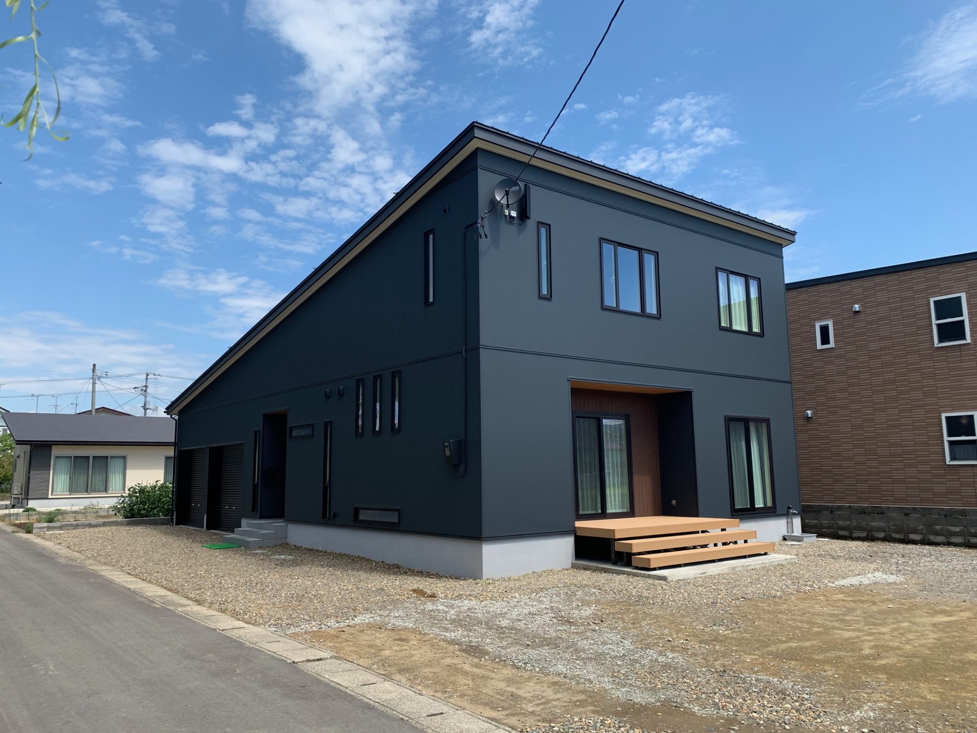 インナーガレージ付き スキップフロアのある間取り 2024年3月27日 最終更新日時 : 2024年11月28日 web_staff 建設地 喜多方市 竣工年月 令和元年8月 設 計 株式会社渡部住建 施 工 株式会社渡部住建 建物の説明 外観は黒をベースにまとめ、ところどころ木をアクセントで取り入れました。インナーガレージなので雪対策は万全です。 内観はリビングにスキップフロアをつくりその下を収納としました。収納に関しては玄関には土間続きの収納(シューズクローク)をつくりました。トイレ脇には造作洗面台をつくり、モザイクタイルがアクセントになり爽やかな仕上がりになりました。 外観 LDK スキップフロア 吹抜け 造作手洗い ロフト下収納 土間続きの収納 インナーガレージ